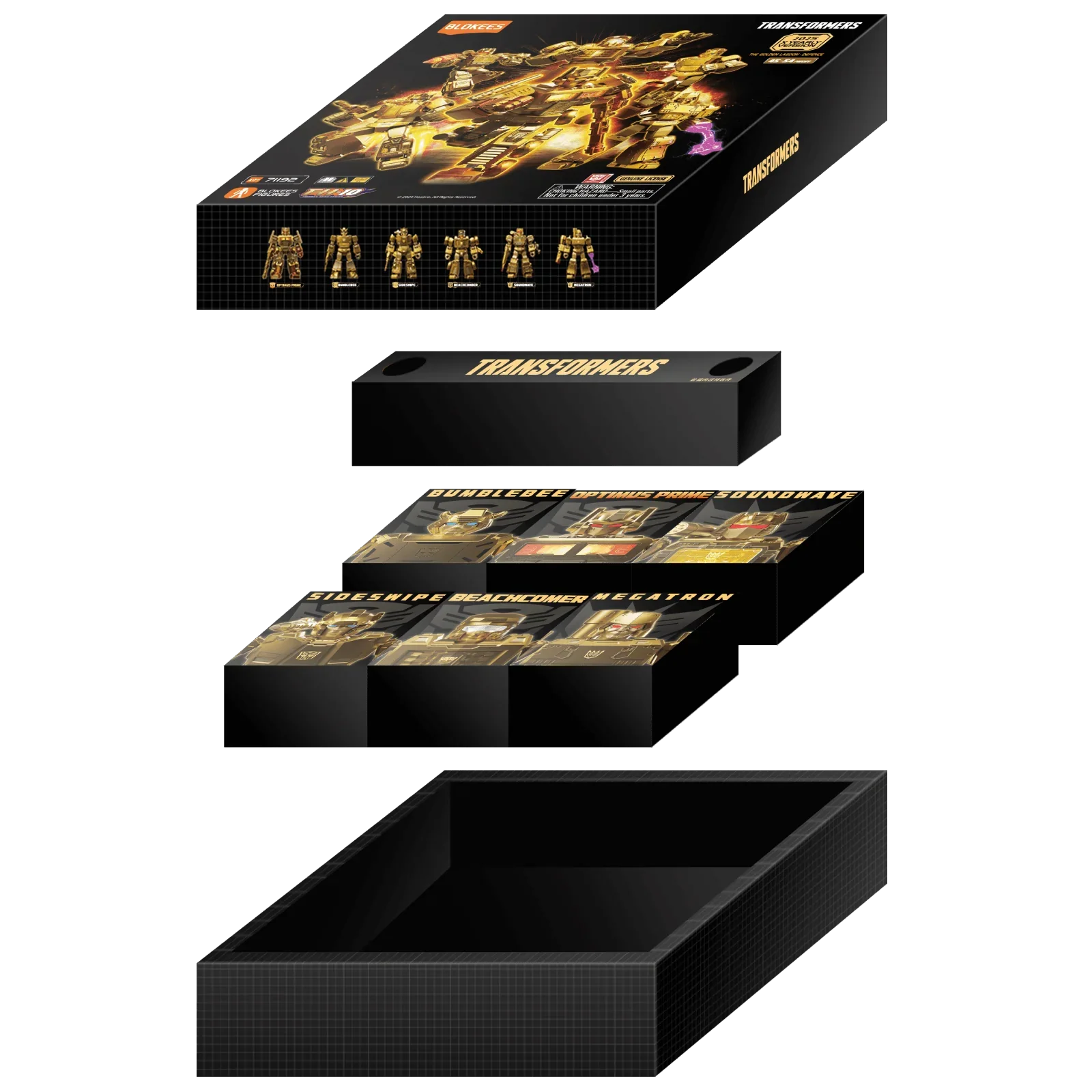 Unbox the limited edition Transformers 2024 Yearly Version: The Golden Lagoon! This collection features five unique figures, each with a limited edition gold coating and upgraded glowing features. With special lighting modules, fluorescent materials, and 20+ points of articulation, these figures bring your favorite characters to life in vibrant detail.