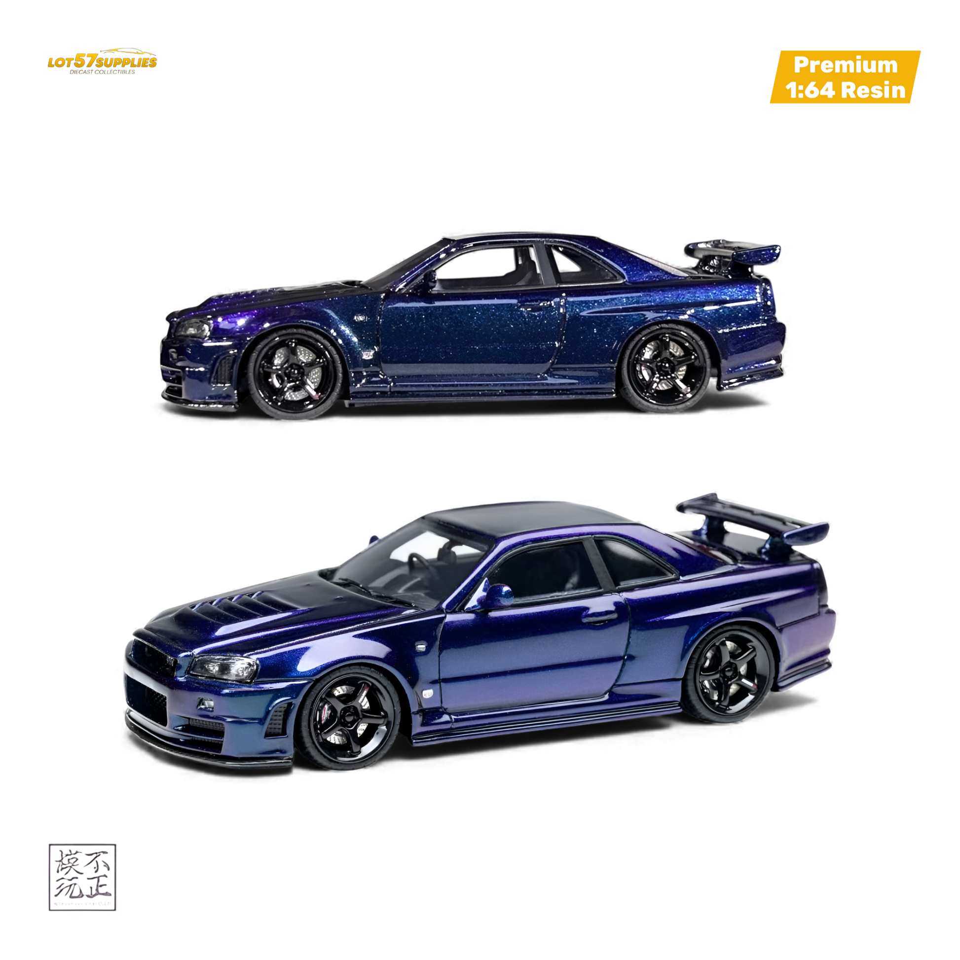 Premium resin model from Cars'Lounge featuring the ultra-rare Nissan Skyline GT-R R34 NISMO Z-TUNE in iconic Midnight Purple. This highly detailed 1:64 scale collectible captures the most sought-after color combination on the legendary Z-TUNE platform with authentic widebody, race-spec details, and flawless finish. Extremely limited to just 149 pieces worldwide.