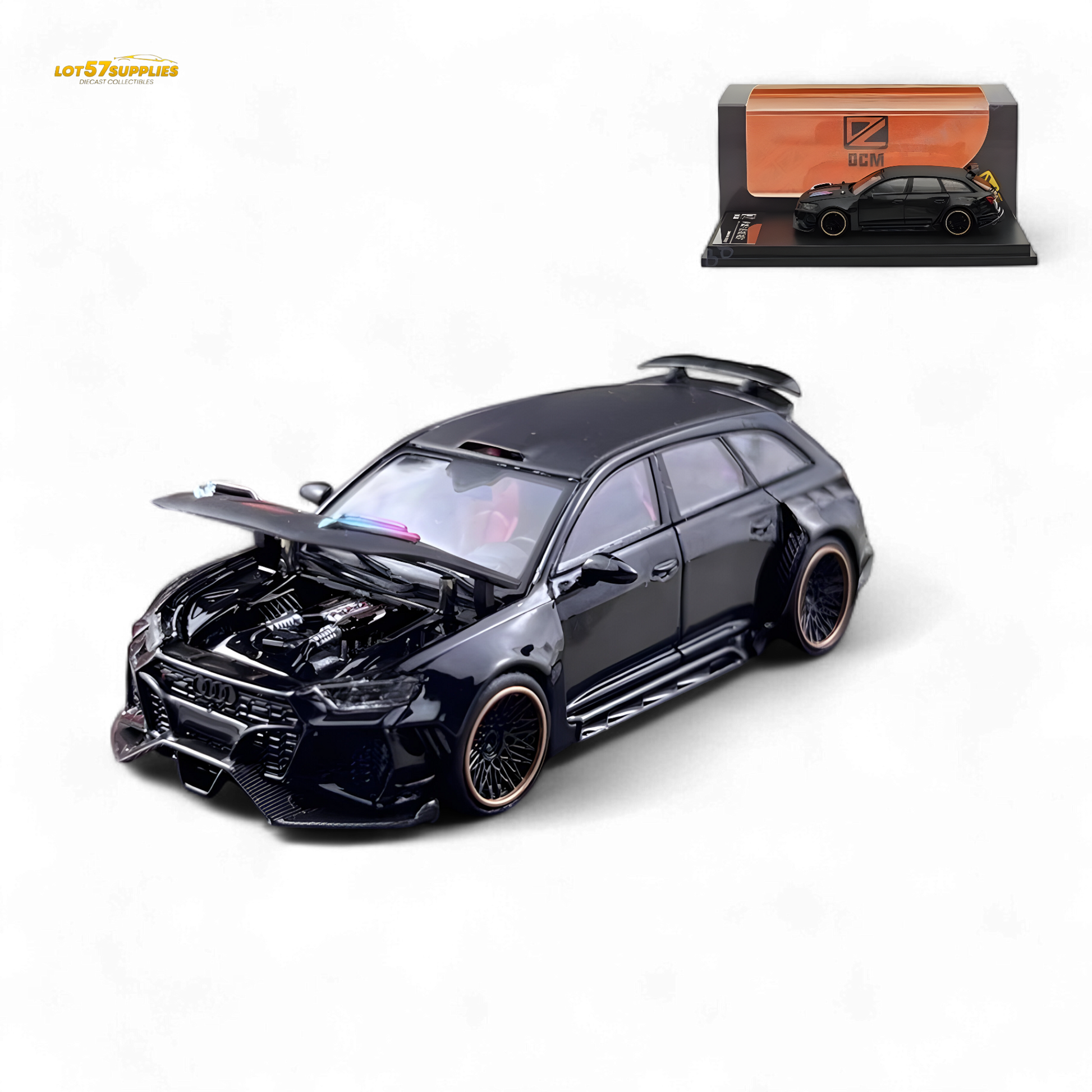 DCM Modified Audi RS6 Wagon Metallic Black - Engine & Openable Hood 1:64