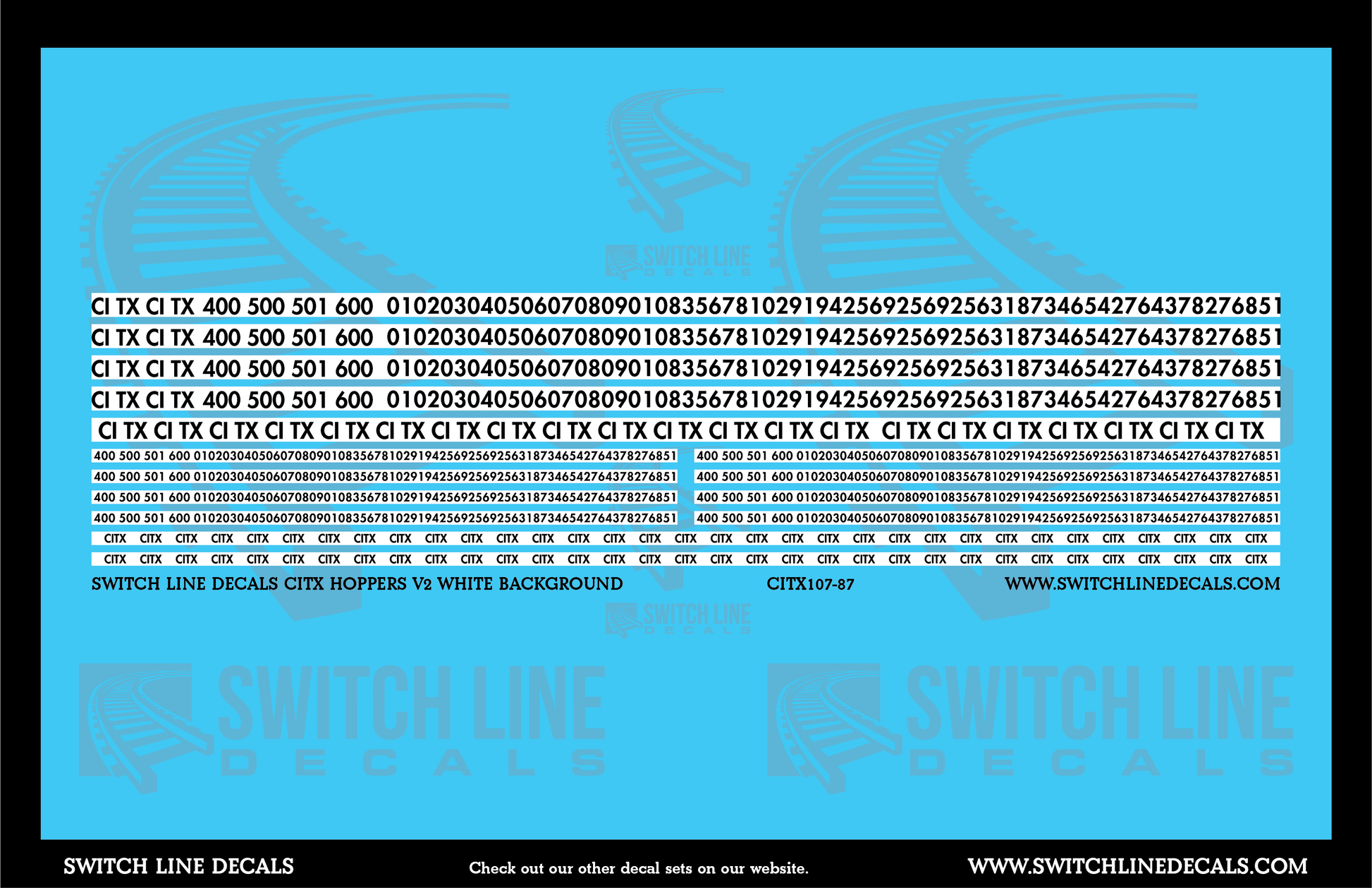 HO Scale CITX Hoppers V2 White Background Decal Set