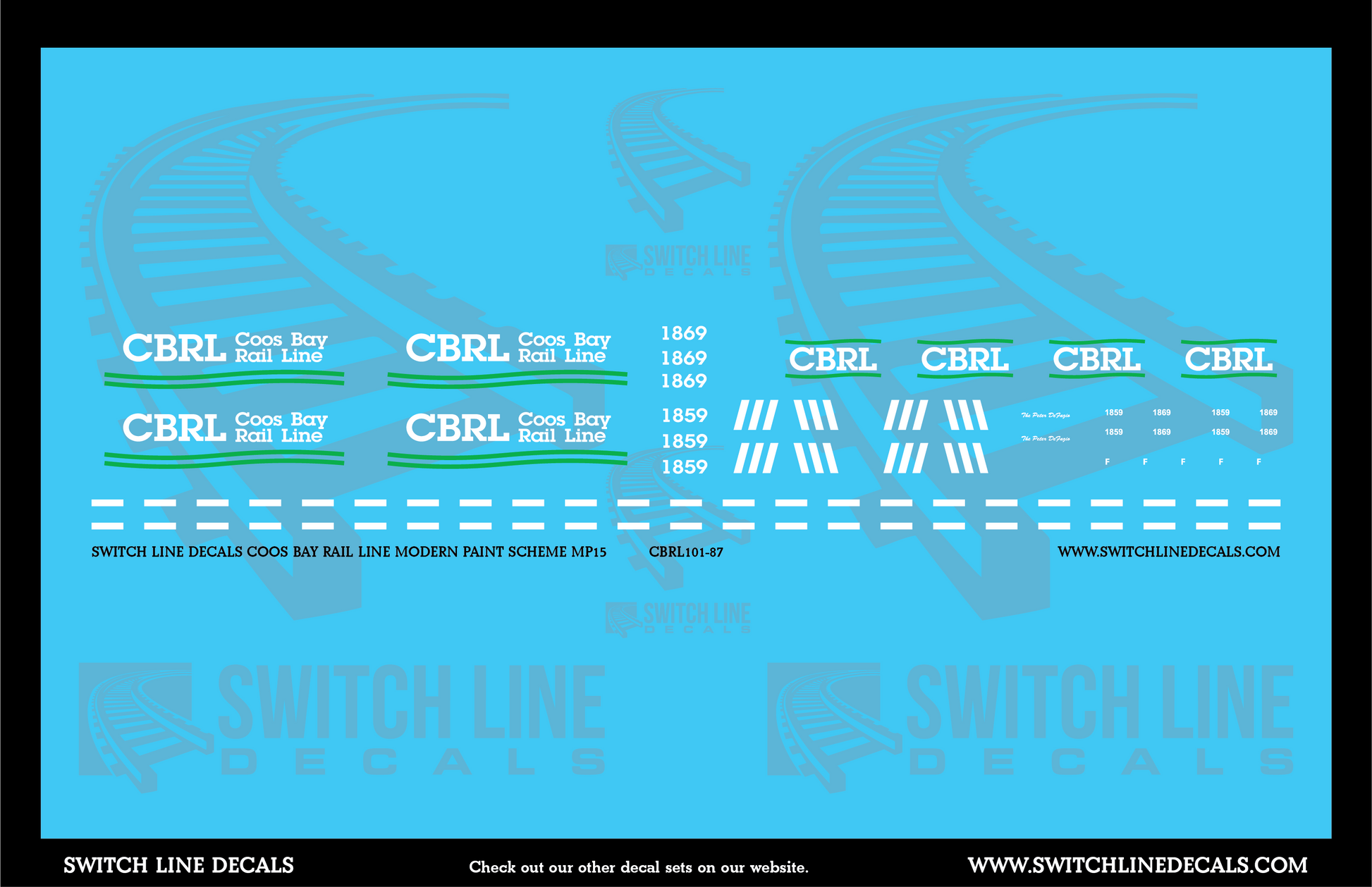 HO Scale Coos Bay Line Modern Paint Scheme MP15 Locomotive Decal Set