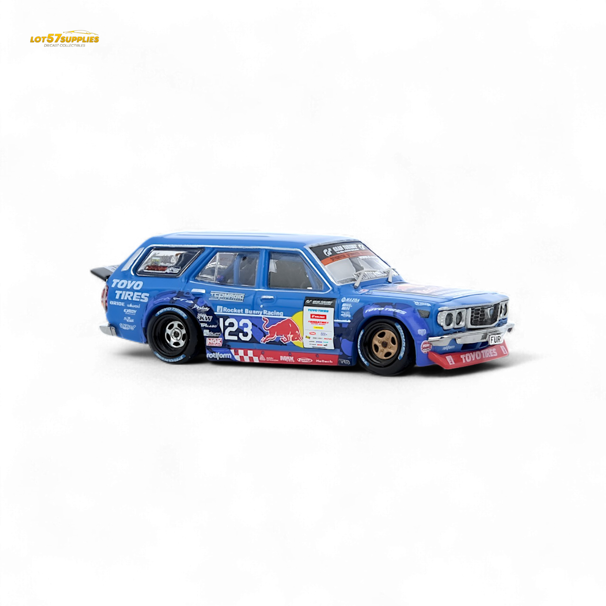 The legend returns in wagon form. This 1976 Mazda RX-3 Station Wagon is no sleeper — it’s the D1GP-spec beast piloted by Mad Mike Whiddett, recreated in ultra-detailed 1:64 scale by INNO64. From the wild livery to the aggressive stance, this casting screams JDM drift royalty.