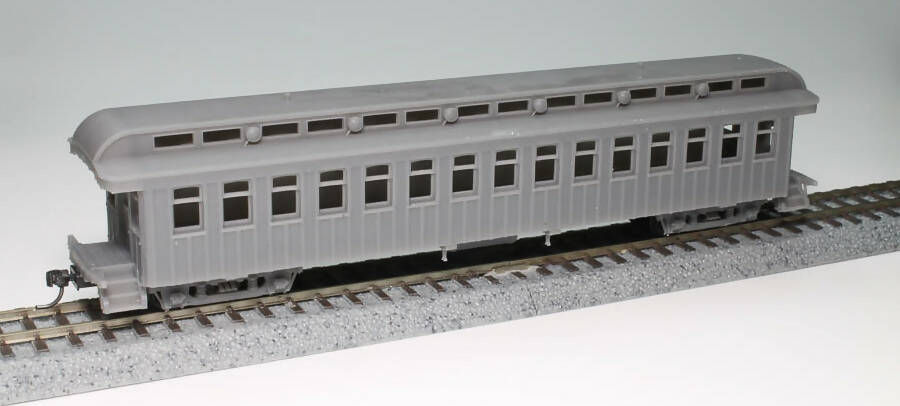Originally built for the Boston Revere Beach and Lynn railroad these cars wound up on many other railroads in later years. This kit includes one car body as was built for the BRB&L as well as a stove stack and restroom vent as were installed during their service on the East Broad Top Railroad. All four cars owned by the EBT Had their stacks in different locations, so we chose to leave them as a separate part allowing you to model the car of your choice.