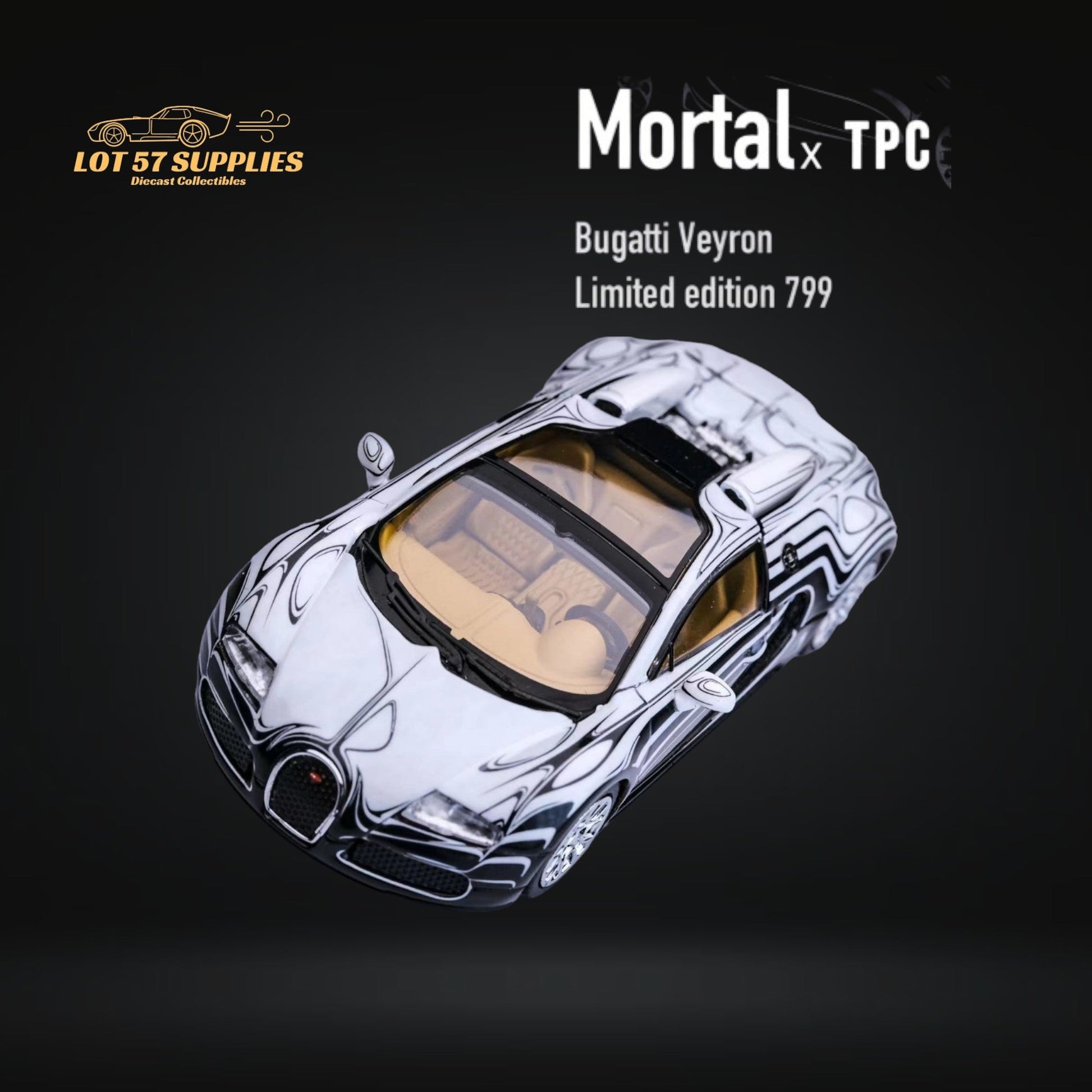 Mortal Bugatti Veyron Ceramic Dragon White/Black With Adjustable Wing 1:64