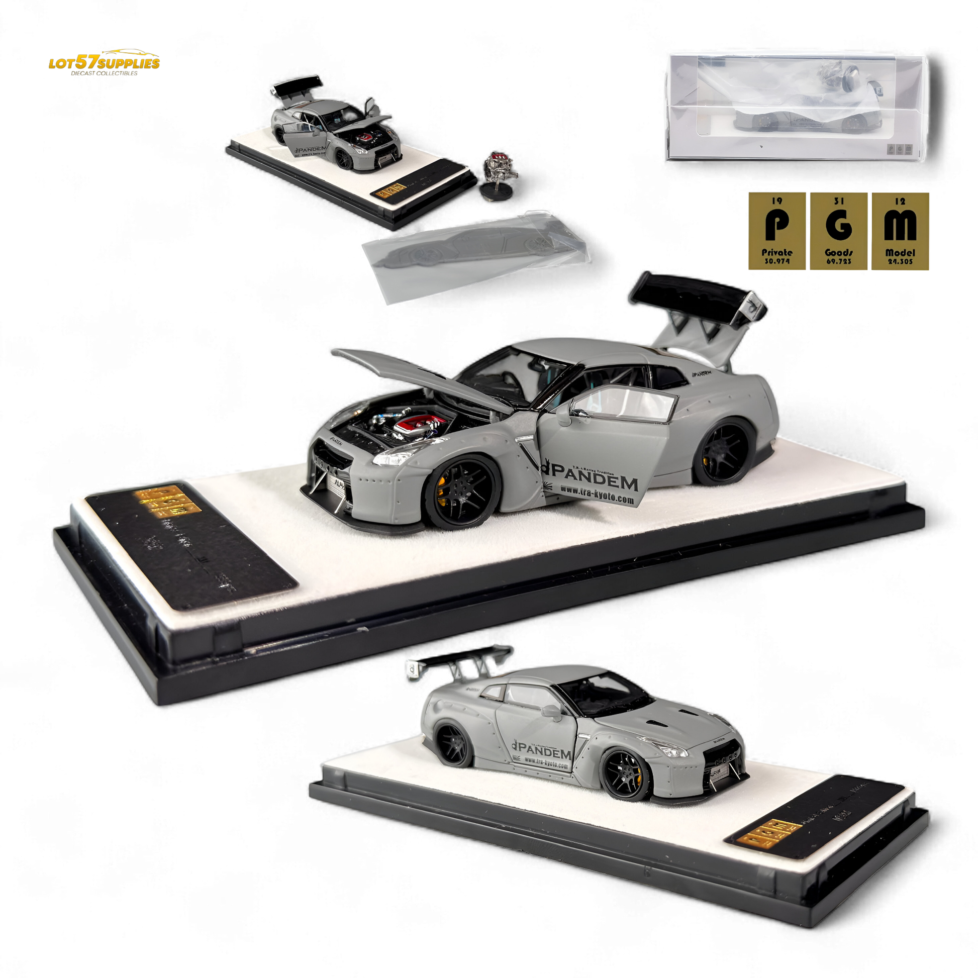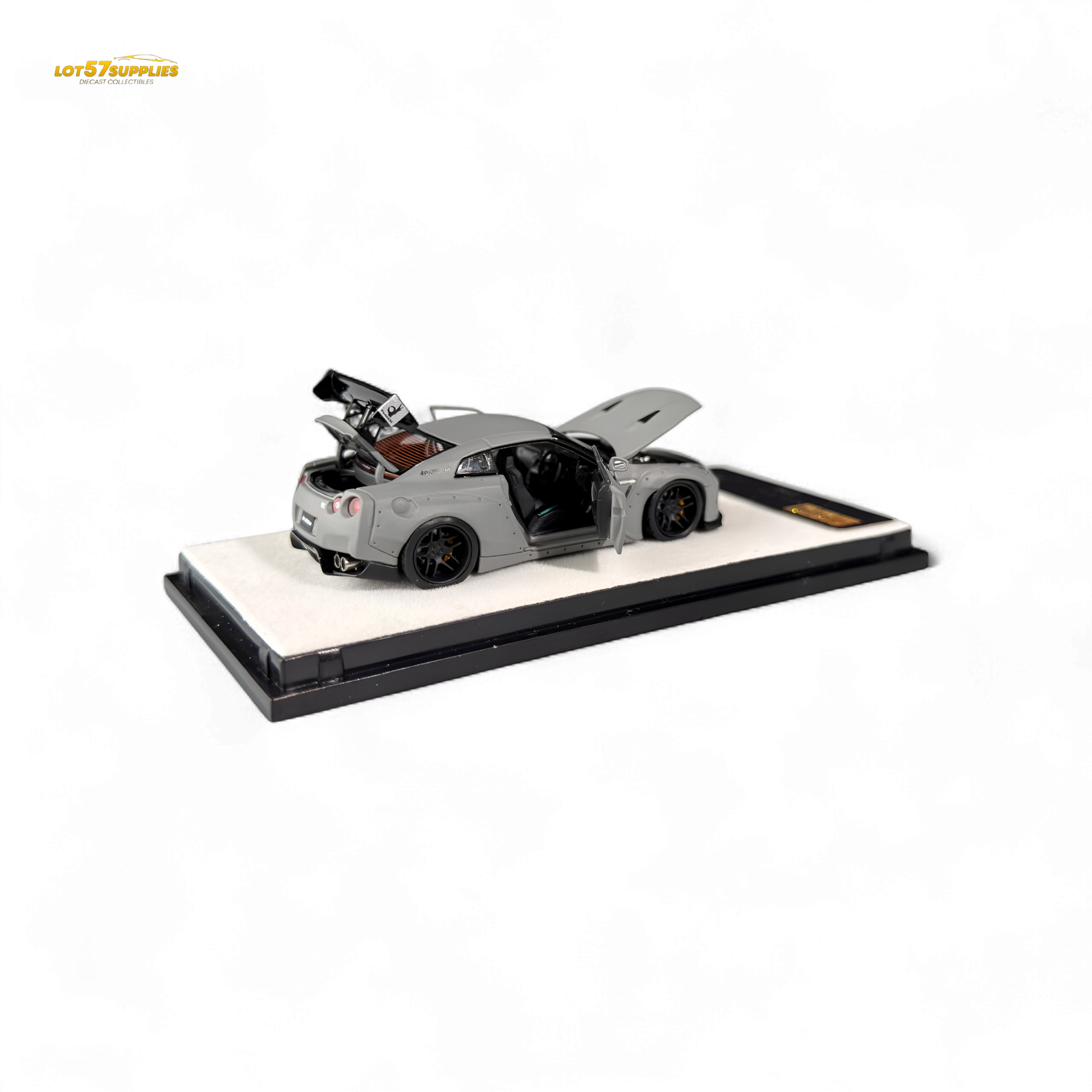 PGM presents the Rocket Bunny R35 Combat Grey - Ordinary Version in 1:64 scale. This striking diecast collectible features a fully-opened design, independent engine, and the iconic Rocket Bunny body kit. Limited to only 999 pieces, each model is crafted for high-end collectors seeking realism and exclusivity. Don’t miss your chance to own this exceptional Nissan GT-R R35 themed piece.