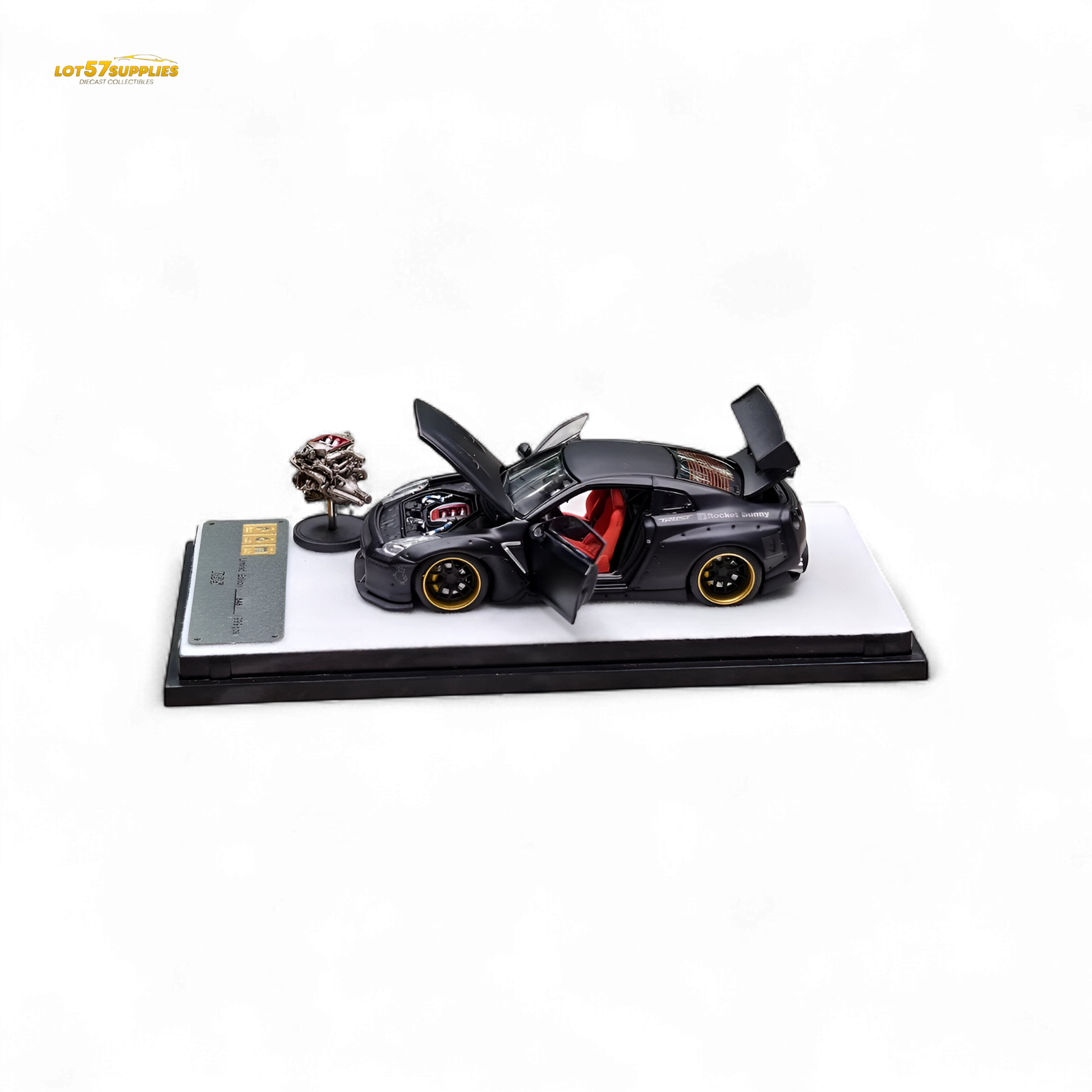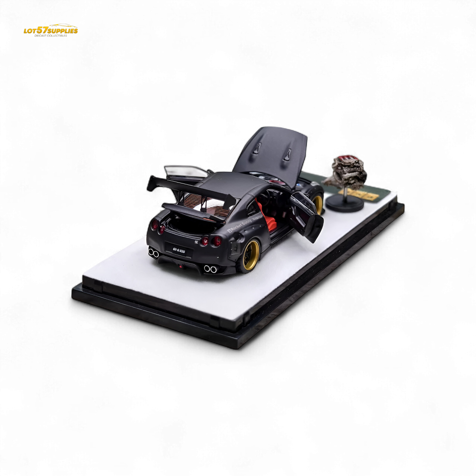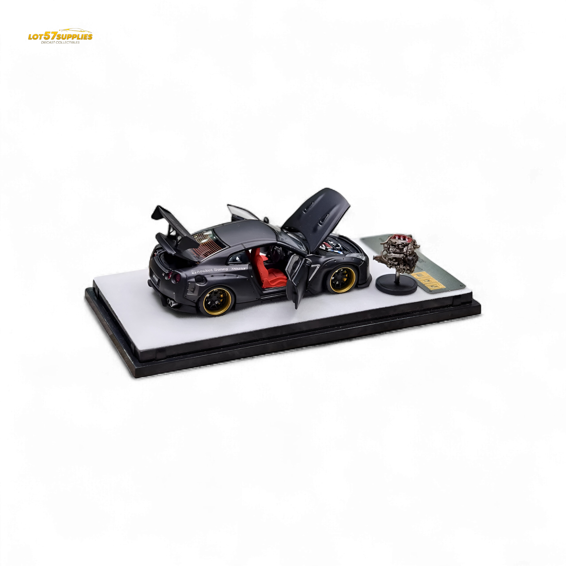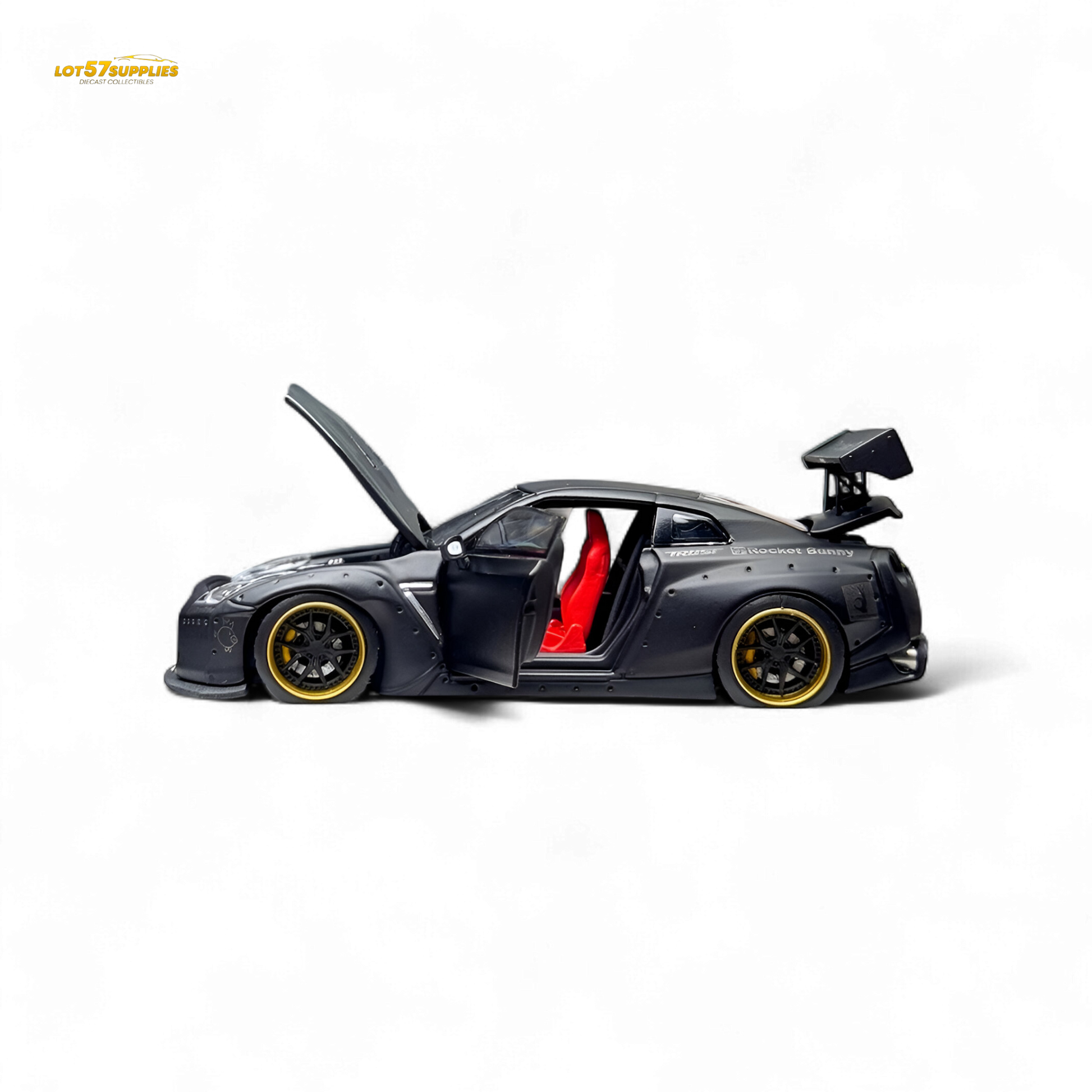 Unleash the dark side of JDM with this fully-detailed Rocket Bunny R35 in matte black.
