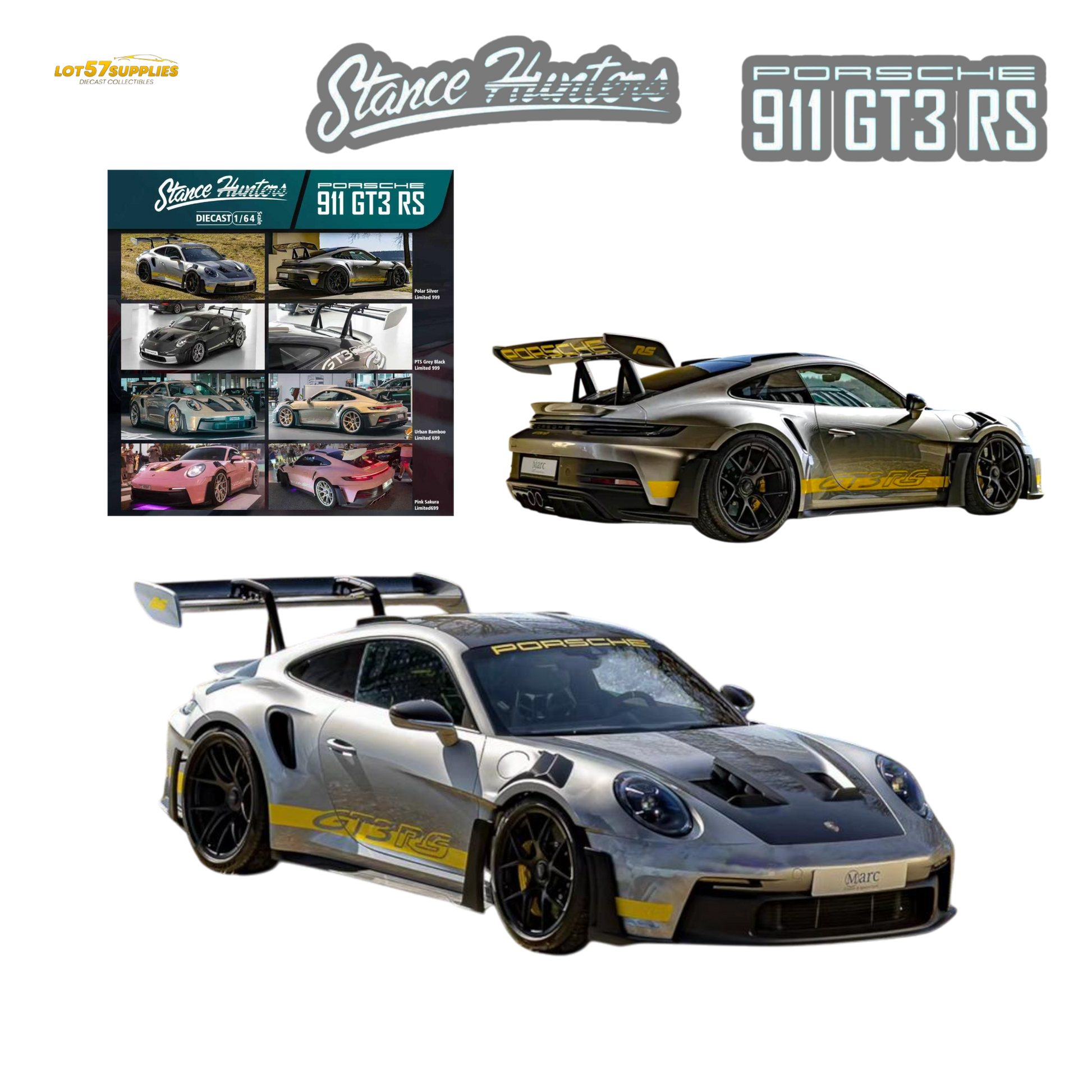 (Pre-Order) Stance Hunters Porsche 911 GT3 RS (992) - Polar Silver 1:64
