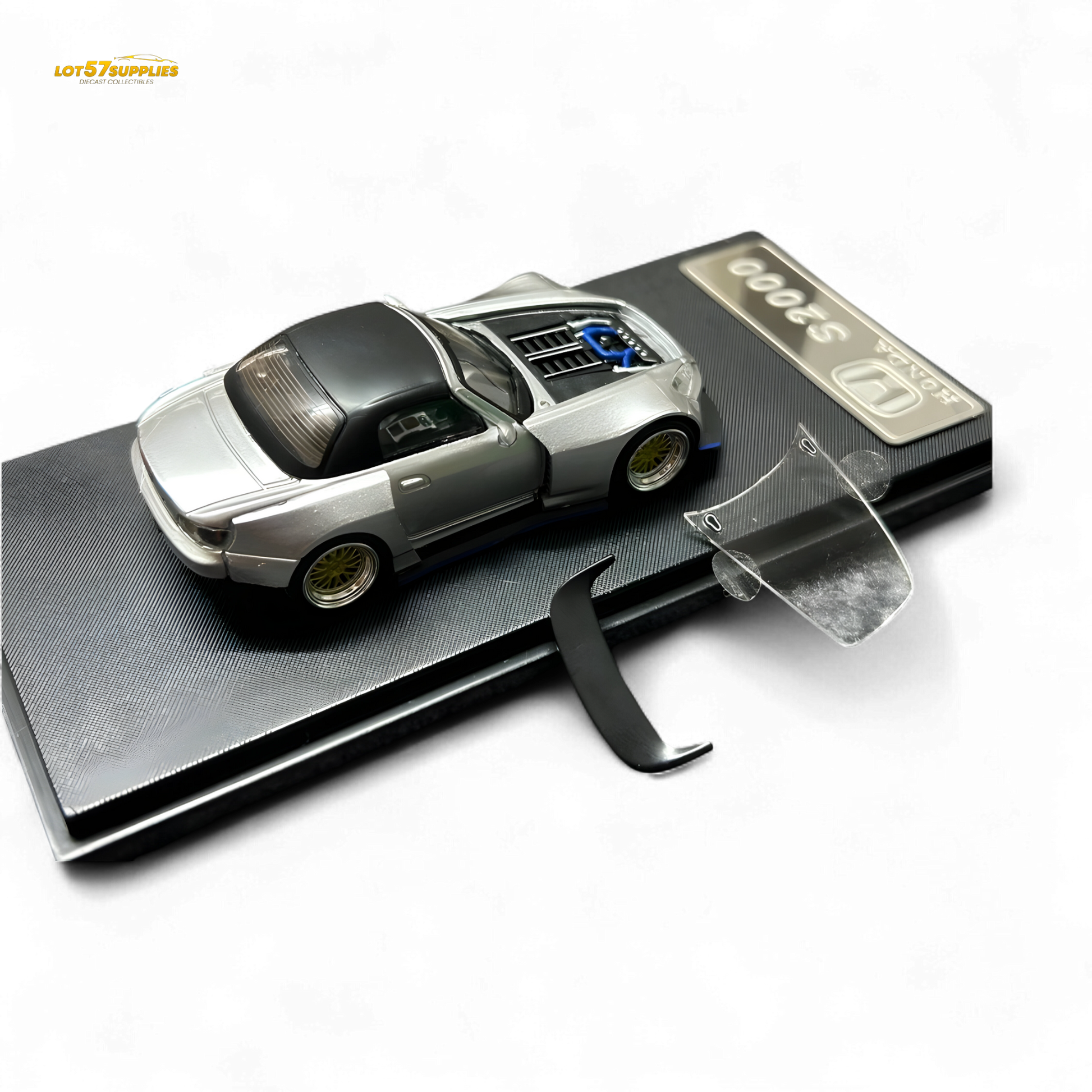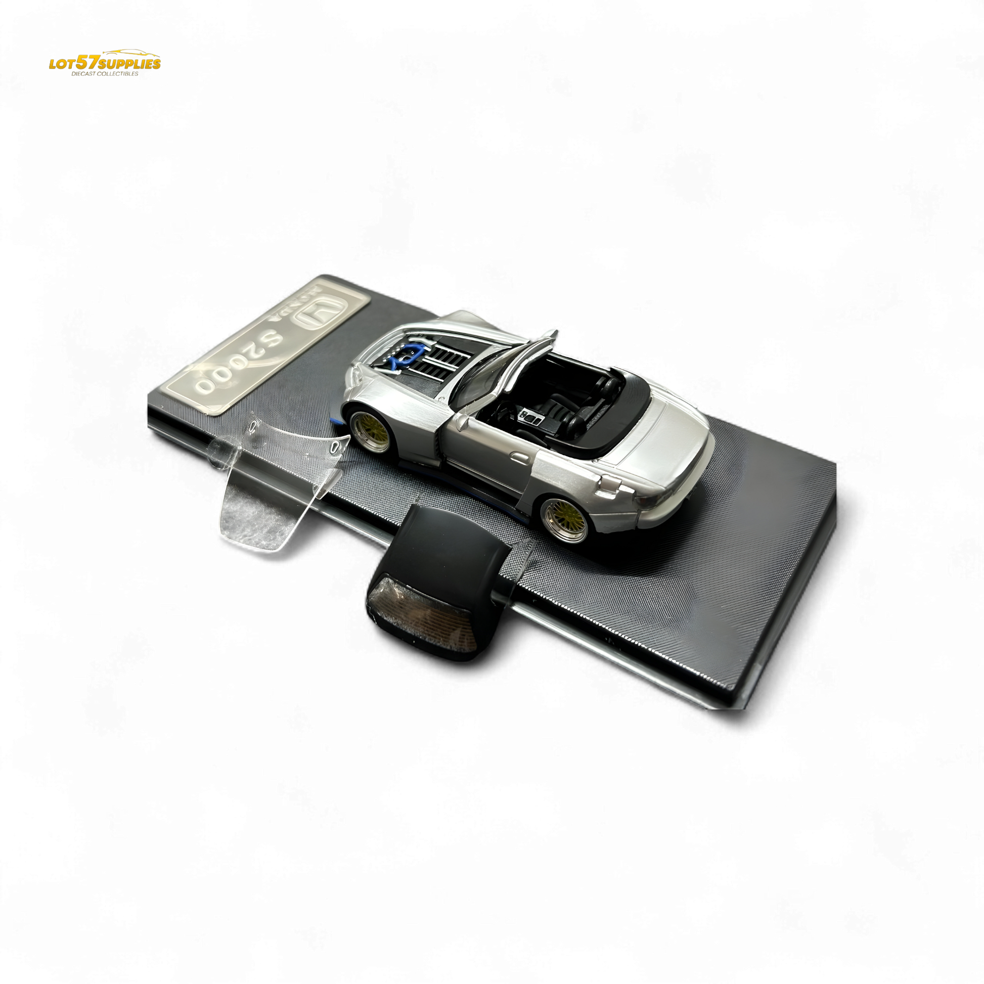 This is the Rhino Model RM 1:64 scale diecast of the Honda S2000 Wide-Body Roadster in Silver. This collectible features detailed craftsmanship, capturing the aesthetics and performance style of the Honda S2000. Made from high-quality materials, it replicates the wide-body roadster's unique design and is perfect for collectors and enthusiasts. Ideal for diecast collectors and Honda fans alike.