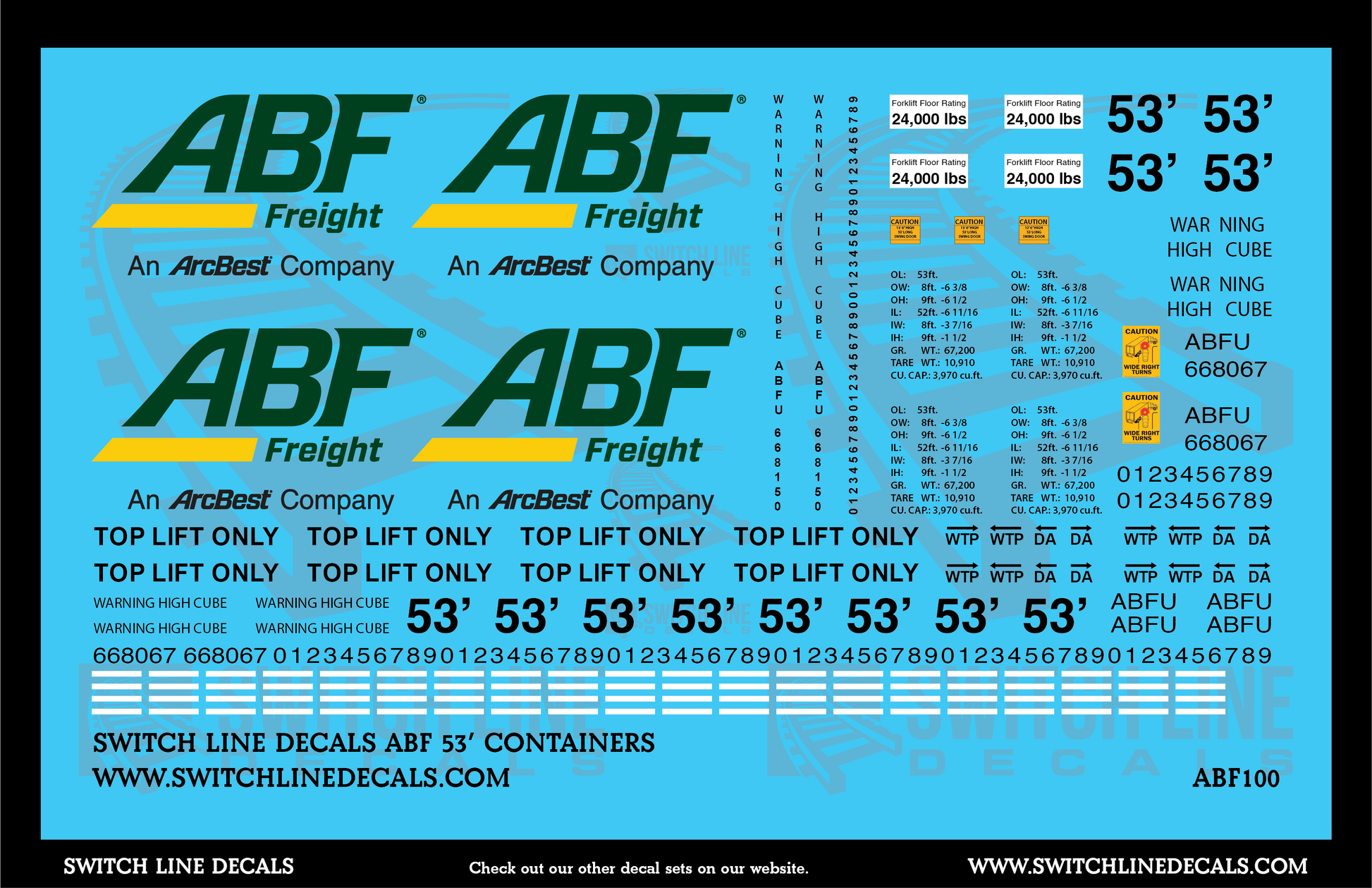 S Scale Modern ABF Freight 53' Containers Decal Set